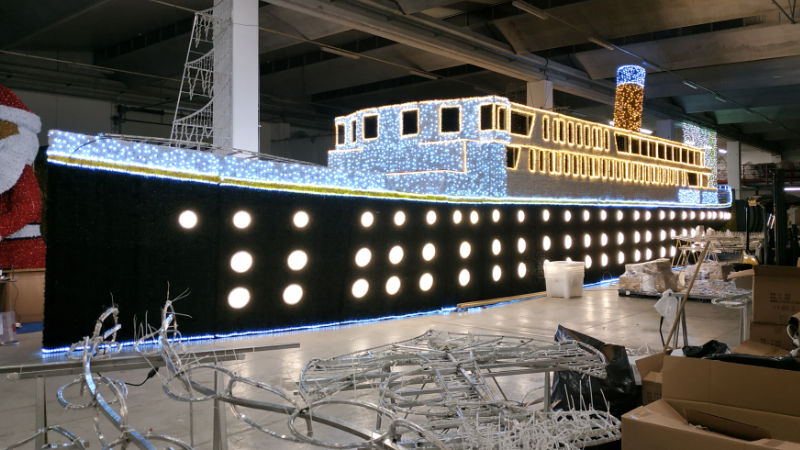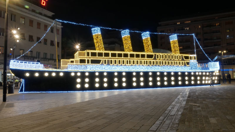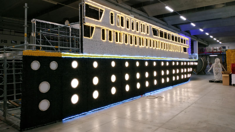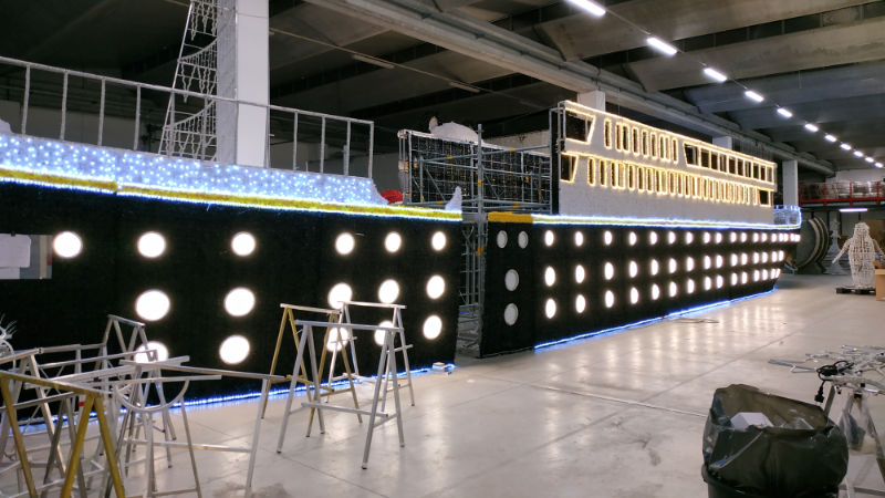 L’opera è stata finalmente assemblata e illuminata, ottenendo un impatto elegante e fedele alla memoria del Titanic. La struttura è lunga 26 metri e larga 3. La sua realizzazione ha portato benefici significativi all’azienda Meta Lux, con richieste da parte di diversi comuni e parchi di divertimento per creare scenografie a tema.